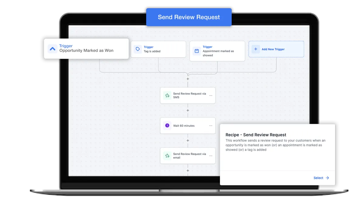 Sending appointment reminders, get more Google reviews & more. Our workflow builder eliminates tedious manual tasks. Takes the heavy lifting off your shoulders.